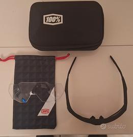 Occhiali da ciclismo 100% lente "fuoco" e lente supplementare neutra. Completi di custodia e cofanetto originale. Condizioni perfette pari al nuovo.