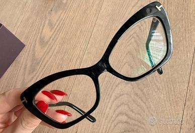 Occhiali a gatto da vista, Tom Ford, con mascherine incluse intercambiabili color nero e bordeaux. Lenti graduate, non ho le lenti originali non graduate, ma le lenti delle mascherine sono senza graduazione. Visibili segni sull’occhiale da vista, dovuti all’applicazione delle mascherine da sole (vedi foto). La mascherina bordeaux non si applica bene sulla parte sx (vedi foto). Per ulteriori foto/infocontattatemi.