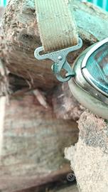 Splendido paio di occhiali protettivi d'epoca, ideali per amanti del vintage, collezionisti di militaria o motociclisti che cercano un look autentico. Caratterizzati da una particolare forma a goccia, montatura metallica e profili protettivi in gomma/pelle sintetica color sabbia. Prezzo trattabile