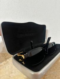 Occhiali da sole Balenciaga originali, dal design elegante e moderno, con montatura nera e dettagli dorati distintivi. Indossati pochissimo, sono praticamente come nuovi. Completi di custodia originale Balenciaga e certificato di autenticità rilasciato dall’ottica. Prezzo: €200 trattabili.