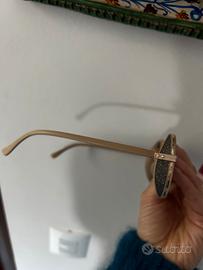 Occhiali tondi, beige, con una mascherina leggermente brillantinosa ai lati