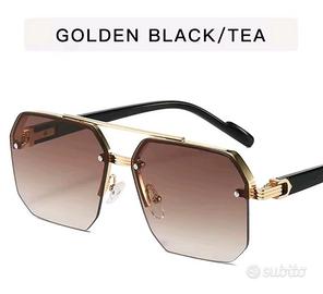 Occhiali da sole in metallo da uomo quadrati con mezza montatura per unghie di riso, tendenza casual, personalità, moda retrò, occhiali per sport all'aria aperta