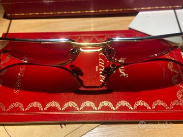 In vendita un pezzo iconico della storia dell'occhialeria di lusso: il rarissimo esemplare di Cartier Vendôme Louis Cartier del 1988 (linea Romance). Condizioni pari al nuovo (New Old Stock), mai indossati e conservati gelosamente. Caratteristiche Principali: • Design: Modello iconico "Flat Bridge" (Ponte Piatto), caratterizzato da una linea pulita ed estremamente elegante (design con dettagli bicolore). • Materiali Preziosi: Montatura con Pesante placcatura in Oro 18k/22k con finiture in Platino/Palladio sui decori delle cerniere. • Dettagli: Cerniere con design a "tre fedi" (simbolo della linea Louis Cartier). • Lenti: Lenti da sole originali Cartier con sfumatura grigio-verde, perfette e assolutamente prive di graffi. • Terminali: Colore bordeaux originale Cartier con logo dorato. Un investimento da collezione in condizioni museali, pari al nuovo (New Old Stock). La placcatura è integra e brillante in ogni punto (la lucentezza dei metalli è impeccabile.); i paraorecchie bordeaux sono perfetti, senza segni d'uso o sbiancamenti. • Misure: 59 □ 14 (punzonatura ufficiale e logo Cartier presenti sotto il ponte). • Autenticità: Anno 1988 (marchio di copyright e numero di serie univoco incisi sulla montatura). Il set completo (Full Set) comprende: 1. Custodia rigida originale Cartier rossa con fregi dorati. 2. Libretto di autenticità e manutenzione originale "Must de Cartier". 3. Panno in microfibra logato originale Questo non è un semplice occhiale vintage, ma un oggetto di alta gioielleria prodotto a Parigi nel 1988. Trovare un "Full Set" Flat Bridge in questo stato di conservazione è estremamente raro. Il valore collezionistico è in costante ascesa.