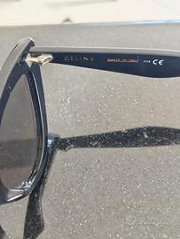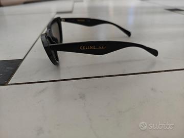 Vendo splendidi occhiali da sole Céline modello cat-eye,montatura nera lucida con logo Céline dorato laterale per acquisto errato.Usati 4/5 volte poi riposti nella custodia originale. ✨ Condizioni: In ottime condizioni Usati pochissimo Nessun segno evidente di usura 📦 Incluso: Custodia originale Céline Scatola originale Panno per la pulizia