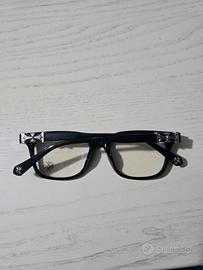Occhiali Chrome Hearts neri con dettagli argento, anti raggi uv e luci blu. Nuovi