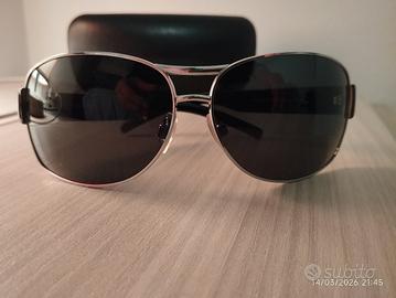 Occhiali D&G indossati una (1) sola volta. Custodia originale. Gli occhiali Dolce & Gabbana nel codice DG 2027-B 061/87 (visibili nella foto) sono realizzati con una combinazione di materiali metallici e plastici di alta qualità utilizzato da D&G: Montatura frontale: Realizzata in metallo (finitura argento per questo specifico codice colore 061/87). Aste: Costruite in acetato di cellulosa nero, un materiale plastico pregiato noto per la sua resistenza e lucentezza. Lenti: Realizzate in policarbonato, un materiale leggero e molto resistente agli urti, di colore grigio/nero. Dettagli: Presentano applicazioni di cristalli/diamantini (strass) che compongono il logo "D&G" sulle aste, un elemento distintivo di questo modello. Nota: Questo modello è storicamente noto per essere una versione commerciale di uno degli occhiali più costosi al mondo, grazie alle versioni di lusso impreziosite da veri diamanti e oro.