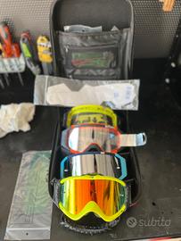 Vendo 3 paia di occhiali da cross ETHEN con custodia per inutilizzo. Insieme do un pacco di lenti a strappo e una lente trasparente nuova.