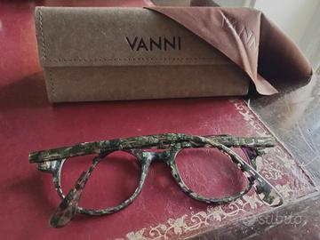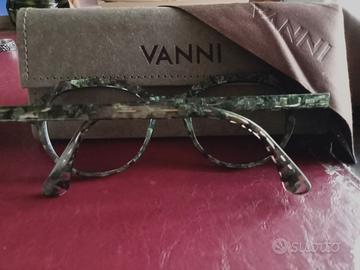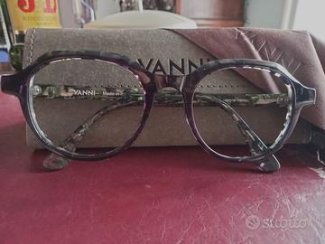 Occhiali da donna Vanni usati solo per un mese, integri nella custodia originale; panno con logo. Vendo a metà del prezzo di acquisto.