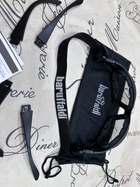 Occhiali specifici da indossare in moto, sono dotati di fascia elastica e due tipologie di stanghette intercambiabili, utilizzati solo tre volte. Le lenti sono in policarbonato, il corpo in Grillamid Tr90. Completo della confezione originale, la custodia è un sacchetto morbido.