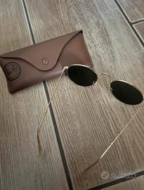rayban originali ottime condizioni montatura dorata lenti verde scuro tondi con custodia
