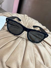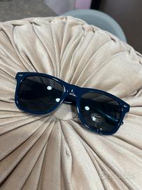 Occhiali da sole con montatura in plastica blu lucida, stile classico e versatile. Lenti scure con protezione UV400, ideali per proteggere gli occhi dai raggi solari. Modello unisex, comodi e leggeri, perfetti per uso quotidiano, mare, città o viaggi. In perfette condizioni, nuovi, mai usati.