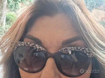 Occhiali Blumarine maculati, lenti scure, della scorsa collezione, praticamente nuovi, dotati di custodia e panno pulizia originali. Autenticità garantita da marchio e numero di serie interno alla stanghetta
