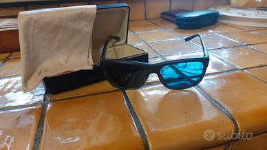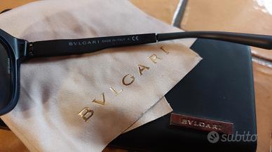occhiali da soleBvlgari da uomo con montatura quadrata nera, Mod 7024 con montatura in acetato e metallo con lenti sfumate grigie.Mai indossati nella Scatola originale