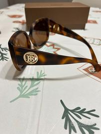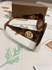 Eleganti occhiali da sole originali Burberry con montatura tartarugata e dettagli dorati, vendo completo di scatola e porta occhiali originale.