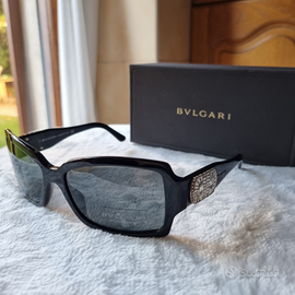 Occhiali da sole Bvlgari di colore nero, montatura squadrata e aste decorate con cristalli.