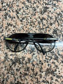 Occhiali da sole Carrera modello "Champion", un classico del design sportivo ispirato agli anni '80. Questa particolare variante CD3 YR è caratterizzata dalla montatura nera con l'inconfondibile profilo superiore giallo a contrasto. Dettagli Tecnici: Modello: Carrera Champion CD3 YR Calibro: 62 (Lente ampia, ideale per un look deciso) Lenti: Grigio sfumato (Originali) Materiale: Optyl (leggero e ultra resistente) Condizioni: Buone, con leggeri graffi sulle lenti NO CUSTODIA INCLUSA! NO PANNO INCLUSO!