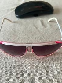Occhiali da sole Carrera Endurance, montatura bianca con profili e lenti che sfumano dal rosso al rosa.