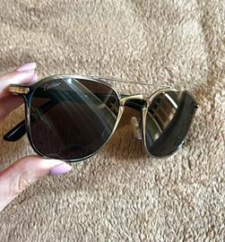 Occhiali da sole Cartier CT0012S 004. Forma rettangolare con doppio ponte in metallo. Logo Cartier inciso sulle aste e motivo doppia C di Cartier sui naselli. Colore della lente grigio, montatura nera. Consegnati nella loro confezione originale.