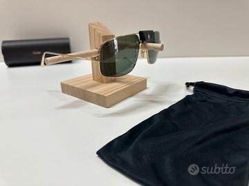La montatura è in metallo color oro con lenti verdi polarizzate (codice colore 002). tutto con astuccio, sacchetto anti polvere e pezza. Occhiale NUOVO, unico graffio nella parte interna dell'asta, assolutamente non visibile. Per altre info e foto contattatemi