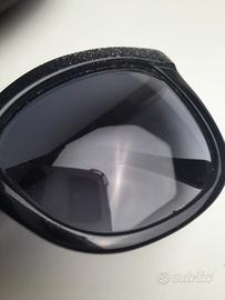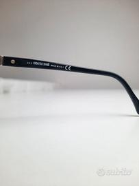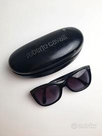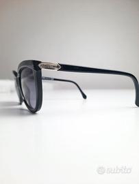 Bellissimi occhiali da sole firmati Roberto Cavalli, made in Italy. Modello da donna a occhi di gatto con montatura in acetato nero e brillantini ai margini. Aste dello stesso colore con inserto in metallo argentato con Signature. Lenti grigio sfumate con Signature sulla lente sinsitra. Articolo anni '2000, in ottime condizioni, con la sua custodia originale. Qualche graffio su lenti e montatura che non ne compromette la bellezza. Modello Acrux 788S, Colore 01B, Misure 54-18, Asta 140.