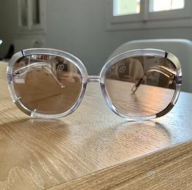 Occhiali da sole Chloé modello Myrte, originali, montatura trasparente con dettagli in metallo argentato satinato e lenti fumè.