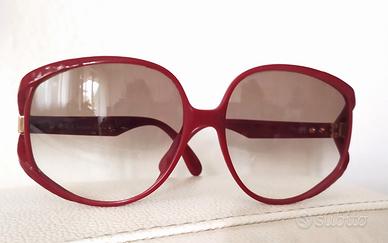 Occhiali da sole CHRISTIAN DIOR CD, anni '80 (cod. 2320 30 Made in Germany) oversize in Optyl da donna, colore borgogna (effetto rilievo tartaruga), lenti fumè. Sono in ottime condizioni, unico difetto una piccola opacizzazione in basso a sinistra (vd. Ultima foto), lente destra: per questo motivo il prezzo è più basso rispetto alle stime.