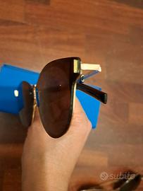 Occhiali da sole molto belli, color rosa con asticine oro e nero, linea particolare.