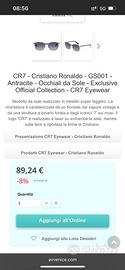 Modello da sole realizzato in metallo super leggero. La montatura è caratterizzata da un frontale dal sapore vintage e da una struttura a binario forata e dagli iconici ’7’ sui musi. Il logo ’CR7’ è realizzato a laser su entrambe le aste, mentre sulle lenti è riportata la firma di Cristiano.