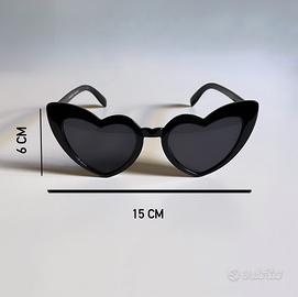 Occhiali da sole montatura cuore nera e lenti nere!😎 Montatura lunghezza: 15 cm Montatura altezza: 6/7 cm