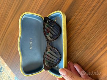 Occhiale da gatta marrone con stecche marchio Gucci