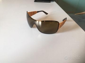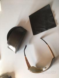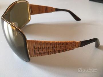 Le parti laterali lavorate tipo intreccio e firmate all'interno, lenti colore ambra bordate in metallo dorato. In perfette condizioni come appena acquistati.