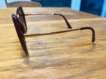 Vendo occhiali da sole Dolce & Gabbana da donna, modello elegante e raffinato con montatura oversize color bordeaux e lenti sfumate.