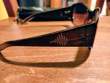 Occhiali da sole per donna dell'Avon. Montatura in cellulosa e lenti marroni, stanghette disegnate, filtro solare categoria 3, assortimento UV400. Nuovi nella sua bustina originale.