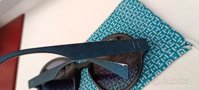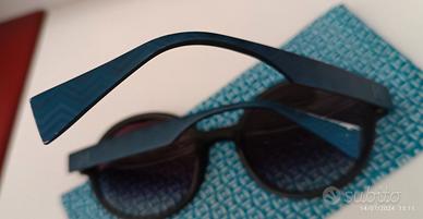 Occhiali da sole rotondi per donna, perfetti per l'estate. Sono di un bellissimo colore blu con lenti viola sfumate. Difetti in foto. Le lenti non presentano nessun graffio