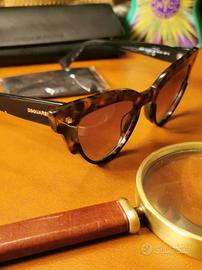 Salve, in vendita bellissimi occhiali da sole del famoso brent DSQUARED 2, la montatura è fi colore marrone maculato, le lenti sono di colore grigio sfumato, offrono un'ottima e rilassante visione. Attuali per forma e colore, eleganti ma nel contempo sportivi. Davvero belli, vengono forniti con custodia e pezzolina. Per qualsiasi eventuale informazione o foto aggiuntive, disponete pure, grazie 🙂