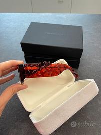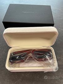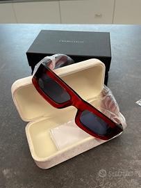 occhiali da sole Evangelisti nuovi mai indossati!modello unisex lenti blu rettangolari e montatura rossa molto particolare.