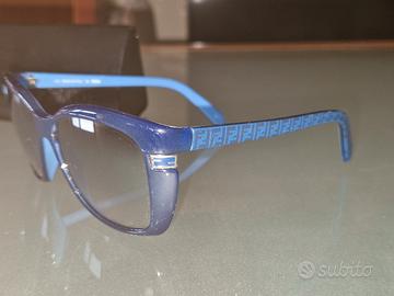 Eleganti occhiali da sole Fendi. - Montatura blu con dettagli Fendi. - Lenti sfumate.