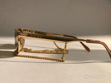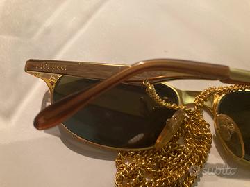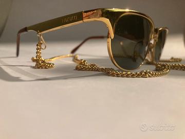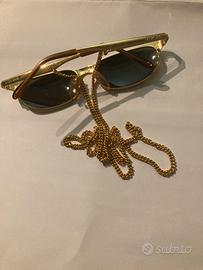 Occhiali da sole Fiorucci Sun Master 4 Metalflex made in Italy con catenella dorata, anni ‘90, timbrati Fiorucci sulle asticelle e all’interno