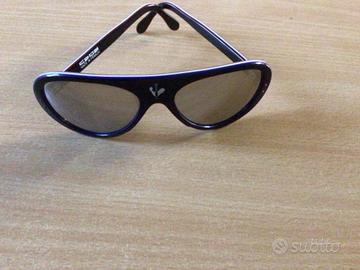 Occhiali da sole/sci/montagna originali CEBE vintage colore blu con inserti bianco rossi, lenti filtranti specchiate, infrangibili, antigraffio