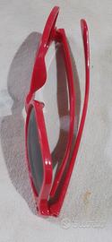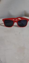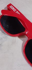 occhiali da sole Sing Tuborg colore rosso lenti scure nero presubilmente gadget anni 90/2000 nuovi mai usati dimensioni cm 15 lunghezza stanghette cm 13