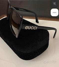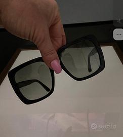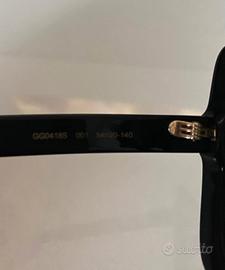 Occhiali da sole Gucci originali logo Brill. modello: GG0418S 001 Colore lenti grigio sfumato. Colore montatura nero forma montatura: Square materiale montatura acetato misura: 54/20/140 inclusa custodia originale Gucci e pezzuoli a in microfibra. Preferibile consegna a mano.