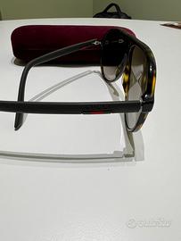 Vendo occhiali da sole Gucci originali, indossati pochissimo e in ottime condizioni. Presente confenzione originale rigida. Di seguito i dettagli: ArticoloGG0423S-009 MarchioGucci ModelloUrban Colore lente Marrone Colore montatura Havana Colore frontaleHavana Materiale lentiNylon Materiale asteRubber Materiale frontaleAcetate GraduabileSì FormaAviator ConfezioneConfezione originale Gucci Misure 60-13-150