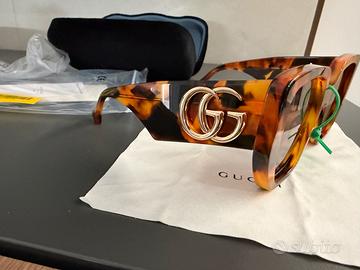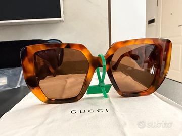 Occhiali da sole Gucci GG0956S, montatura Havana in acetato, nuovi di zecca mai indossati, acquistati in negozio con garanzia attiva. Custodia originale inclusa (scatola mancante). Protezione UV 100%, forma oversize perfetta per un look sofisticato. Taglia 54-19-145. Autentici al 100%." Con ricevuta negozio online Ottica azzuro capri