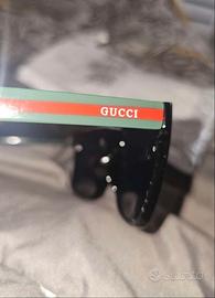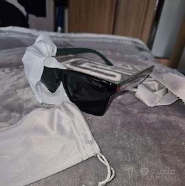 Occhiali da sole neri dal design moderno e squadrato, arricchiti dalle classiche aste con banda verde e rossa. • Stile: Montatura lucida total black con lenti scure, perfetti per ogni occasione. • Dettagli: Logo inciso sulla lente e scritta interna "Made in Italy". Accessori inclusi: Occhiali completi di sacchetto protettivo e imballaggio con pluriball e custodia prottetiva. Presentano ancora le pellicole protettive sia sulle aste che sulle lenti. • Condizioni: nuovo mai usato, come mostrato nelle foto.