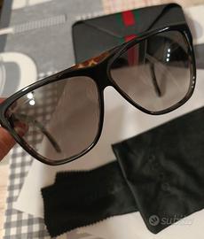 bene sul mio viso. Bellissimi praticamente nuovi senza nessun graffio e usura occhiale a mascherina modello abbastanza appariscente e grande. Caratteristiche: colore nero/maculato con sigla Gucci dorata, lente chiara marrone con incisione marchio Gucci. Insieme occhiali custodia e sacchettino protezione occhiali Gucci.