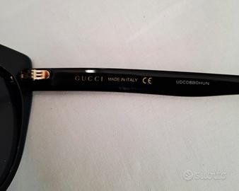Occhiali da sole Gucci originali, montatura nera con inserti glitterati e lente scura. Venduti senza custodia, come in foto. Ottime condizioni.