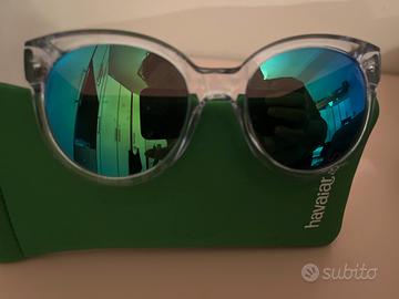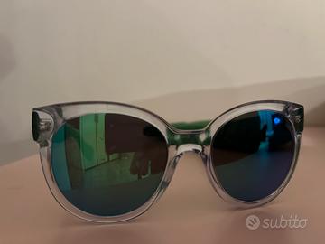 Occhoali da sole verdi specchiati con montature trasparenti e bacchette in caucciù