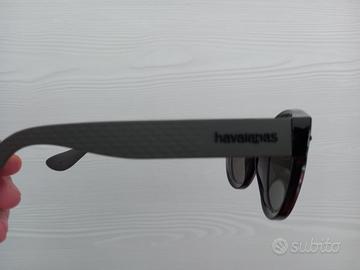 Occhiali da sole havaianas a specchio blu con montatura blu e stanghette in caucciù grigio. Con comoda custodia in spugna. Praticamente nuovi.