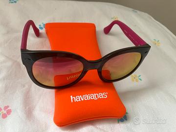 Vendo occhiali da sole mai usati Havaianas da donna con aste fuxia e lenti cangianti. Prezzo leggermente trattabile. In ottimo stato come da foto