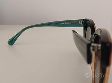 Occhiali da sole rotondi in stile farfalla con montatura trasparente in verde smeraldo sfumata champagne.